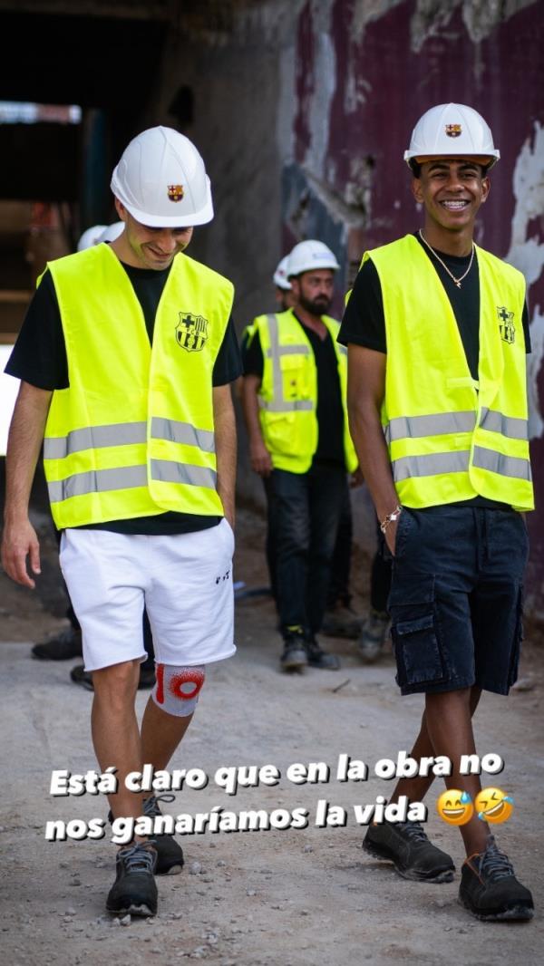 7月17日讯 巴萨中场佩德里更新社媒动态,晒出与队友参观诺坎普改建工地的照片,